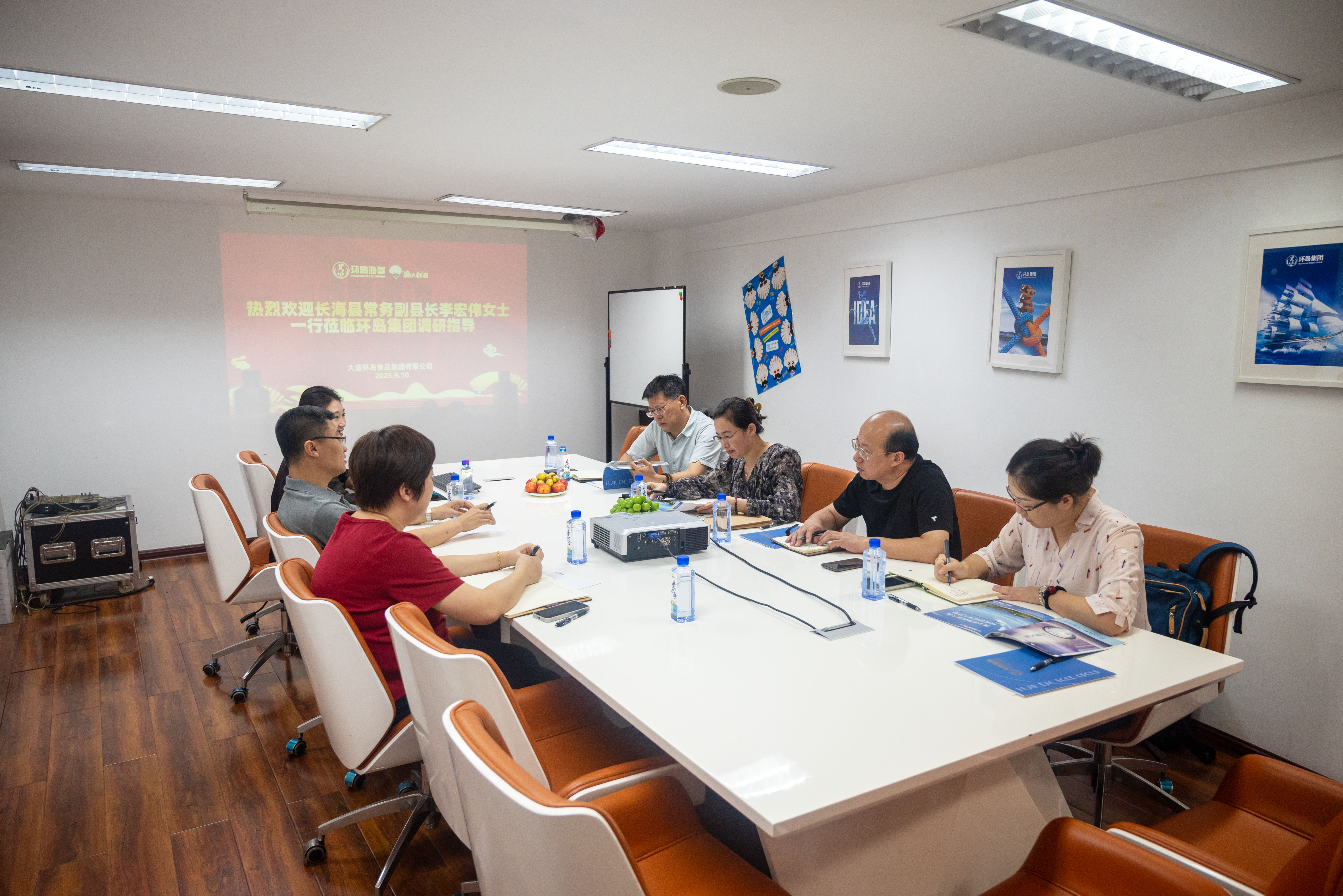 9月10日,長(zhǎng)海縣常務(wù)副縣長(zhǎng)李宏偉 攜縣發(fā)改局、商務(wù)局、統(tǒng)計(jì)局等部門(mén)領(lǐng)導(dǎo) 蒞臨環(huán)島集團(tuán)調(diào)研指導(dǎo) 調(diào)研組詳細(xì)了解企業(yè)在海參、海鮮零食、預(yù)制菜等方面的發(fā)展情況。座談會(huì)上,王振東董事長(zhǎng)匯報(bào)了企業(yè)發(fā)展現(xiàn)狀與規(guī)劃。 李宏偉副縣長(zhǎng)對(duì)環(huán)島集團(tuán)在推動(dòng)地方海洋產(chǎn)業(yè)發(fā)展中的作用表示肯定,并表示政府將持續(xù)營(yíng)造良好發(fā)展環(huán)境,助力企業(yè)做優(yōu)做強(qiáng)。 環(huán)島集團(tuán)將不負(fù)厚望,致力于打